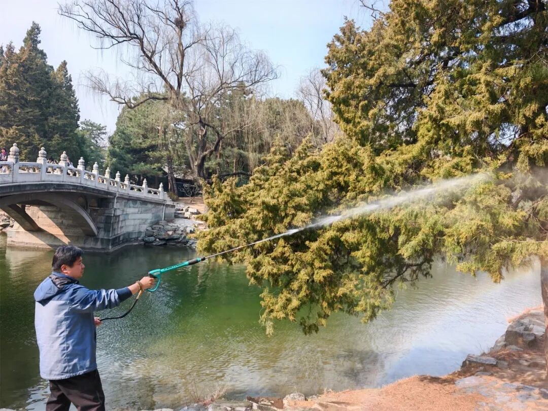 从花粉季节发生规律来看,北京春季致敏花粉散粉期为3月上旬至4月下旬,主要致敏原为柏科植物。为从源头压减致敏花粉产生量,全市已提前布局物理防治工作。在2025年秋冬季,海淀等区便结合圆柏生长特性,先行开展圆柏雄球花枝条修剪作业,天坛、地坛等公园也提前部署修剪、喷水、湿化等防治措施,力求从源头减少花粉产出。