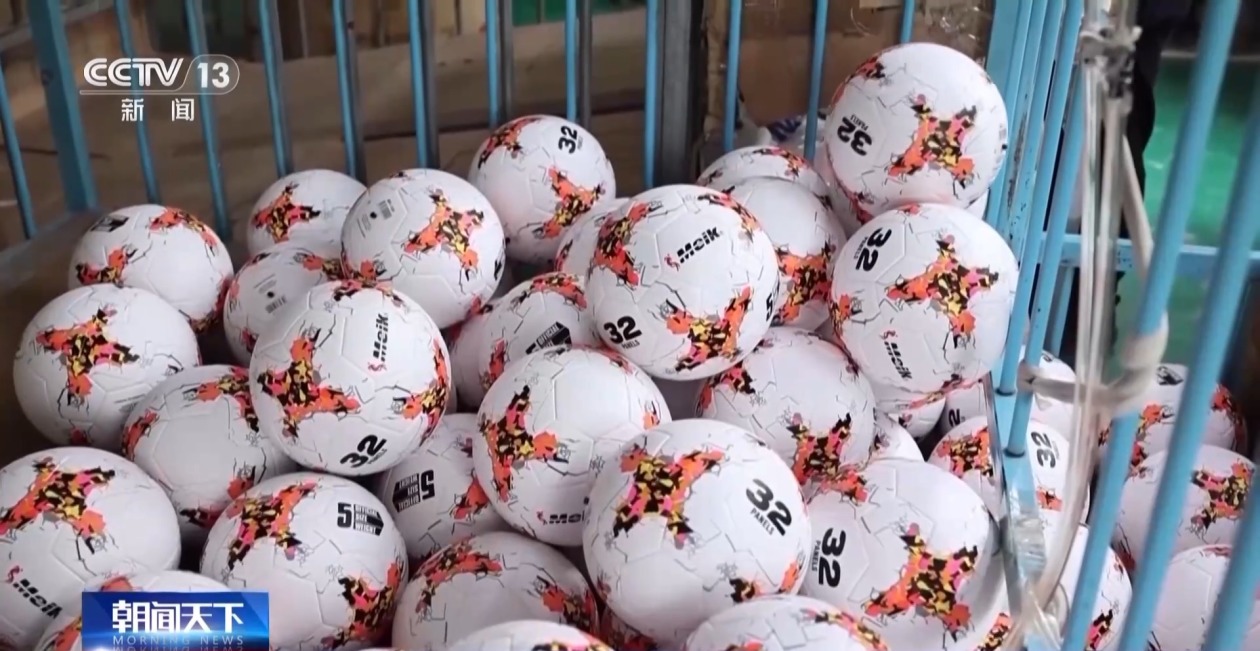 创意带动生产,热点赛事更是让生产端火力全开。随着2026年美加墨世界杯日益临近,义乌的体育用品企业已全面进入集中生产和发货的冲刺阶段。