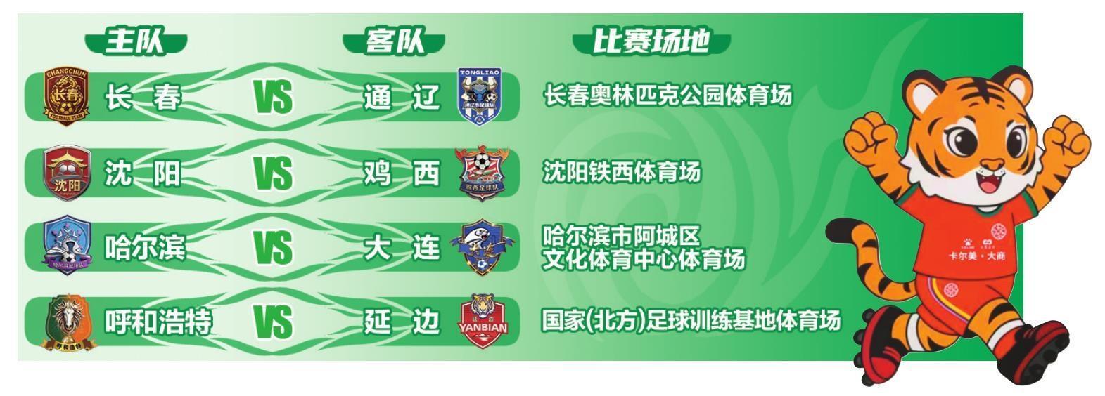 根据规则,首轮比赛对阵为长春VS通辽、沈阳VS鸡西、哈尔滨VS大连、呼和浩特VS延边。