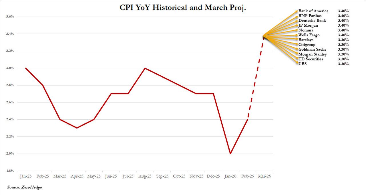 在同比方面,经济学家预测,这一环比涨幅将推动3月CPI同比上涨3.3%,也将创下2024年4月以来的最高水平。在2月,美国CPI同比涨幅为2.4%——这预示着前值与目前市场预期间,相差了近乎一个百分点……