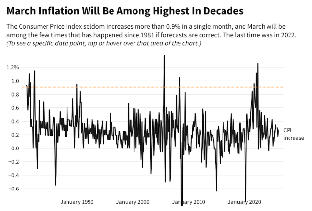 目前业内人士普遍预计,由于美以与伊朗的战争推高了石油价格,且关税的传导效应持续存在,美国3月消费者价格指数很可能录得近四年来最大的环比涨幅,这将进一步削弱今年降息的希望。