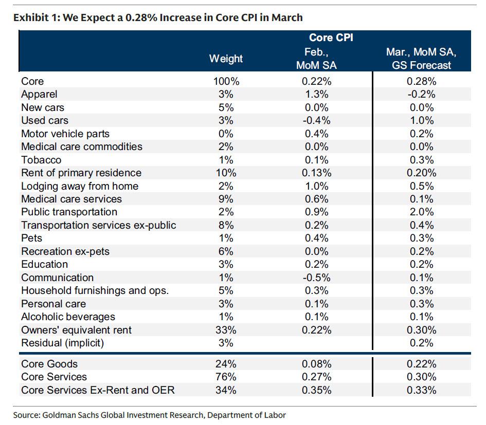 仔细查看高盛的预测报告,该行重点介绍了预计在本周报告中将看到的四个关键通胀组成部分的趋势: