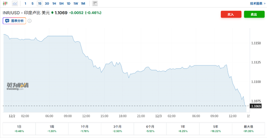 12月3日周三,印度卢比兑美元汇率一度贬值0.3%,触及90.1575的历史新低。据分析,印度与美国贸易谈判停滞不前打击了市场情绪。