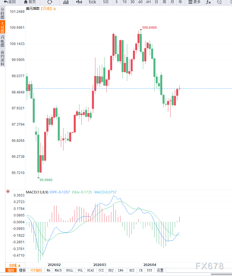 汇通财经APP讯——周四亚洲时段,(DXY)延续上行趋势,升至98.70附近,实现连续第三个交易日上涨。当前美元走强的核心驱动来自地缘风险与通胀预期的双重支撑,市场情绪整体偏向谨慎。