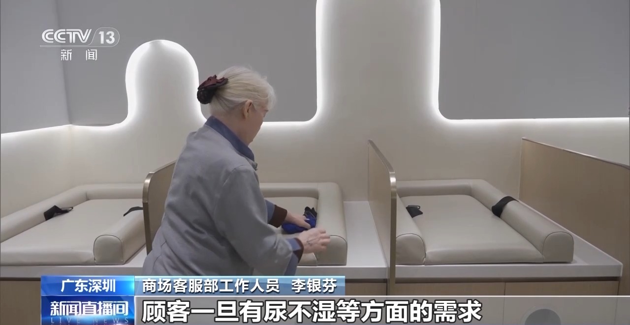 商场客服部工作人员 李银芬:每天都会有顾客来使用,顾客一旦有尿不湿等方面的需求,我们的工作人员3分钟内就会送到。 据了解,目前深圳市已有超过20家重点商场、交通枢纽试点增设了“父婴室”。