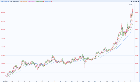 12月12日,美国纽约COMEX白银期货年内涨幅达110%,价格突破64美元/盎司,创历史新高,最高触及64.74美元/盎司;伦敦白银现货价格年内涨幅达110%以上,也突破64美元/盎司,最高触及64.35美元/盎司。12月12日,上期所沪银期货年内涨幅达108%收报14892元/千克,创历史新高;上金所白银T+D年内涨幅约100%,收盘报14925元/千克。