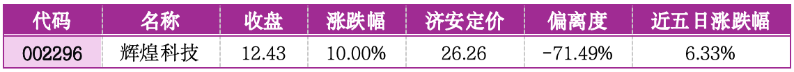 机会提示:辉煌科技偏离济安定价-71.49%,低估值优势突出。叠加轨道交通行业复苏提速,城轨、高铁智能化改造需求释放,公司核心产品市占率稳定,估值修复空间广阔。