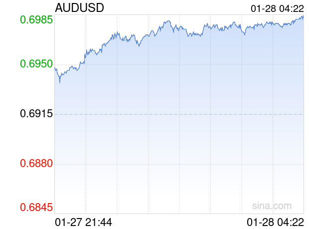 新浪外汇消息2026年01月28日,截至04时22分,外汇市场上兑美元汇率突破1澳元兑换0.6985美元。涨幅为1.0123%