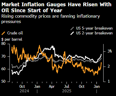 1 月,美国 10 年期通胀互换合约价格攀升 11 个基点。通胀预测从未如此棘手。