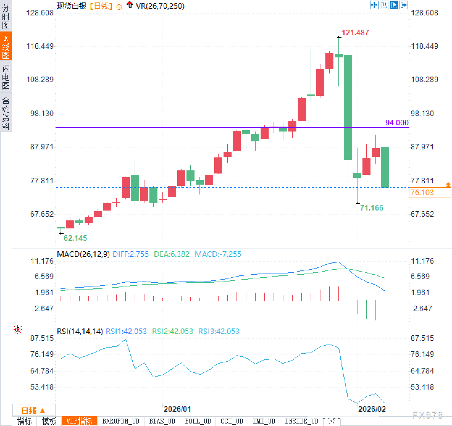 综合来看,现货白银在76美元附近的运行,实质是市场用更高的波动代价来消化不确定性。短期应密切关注94.000美元的压力有效性与71.166美元的支撑力度,中期则需紧盯美元走势与政策预期的变化。