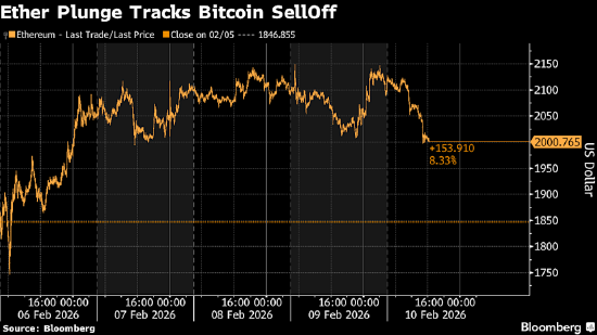 自10月大幅抛售以来,以太坊跌幅超过比特币,此次一度大跌6%,至1994美元。截至纽约时间早上6点25分,以太坊下跌5%,交投于2014美元附近。