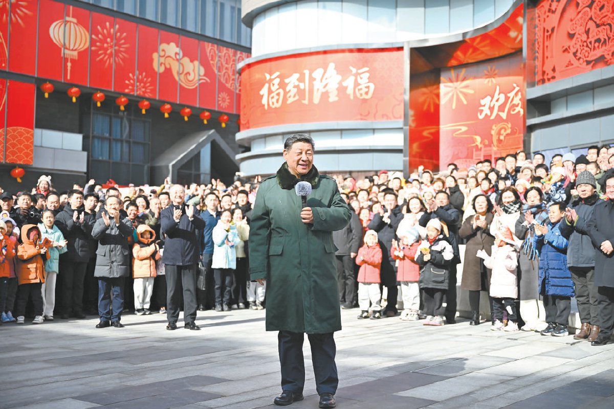 2月9日至10日,中共中央总书记、国家主席、中央军委主席习近平在北京考察并看望慰问基层干部群众。这是10日上午,习近平在东城区隆福寺街区考察时,向全国各族人民和香港同胞、澳门同胞、台湾同胞、海外侨胞致以美好的新春祝福。 新华社发