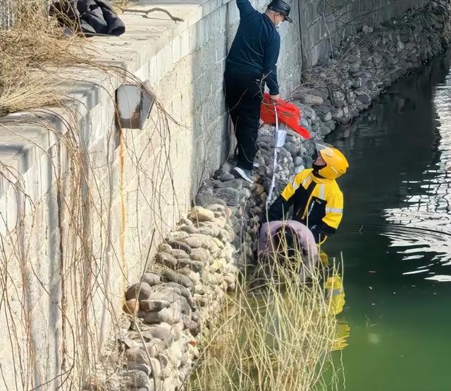 2月12日下午,北京西城冰窖口胡同附近一名女性落水,路过的一名外卖骑手跳进两米多深的河道,与爱心群众一起将落水者救上岸。