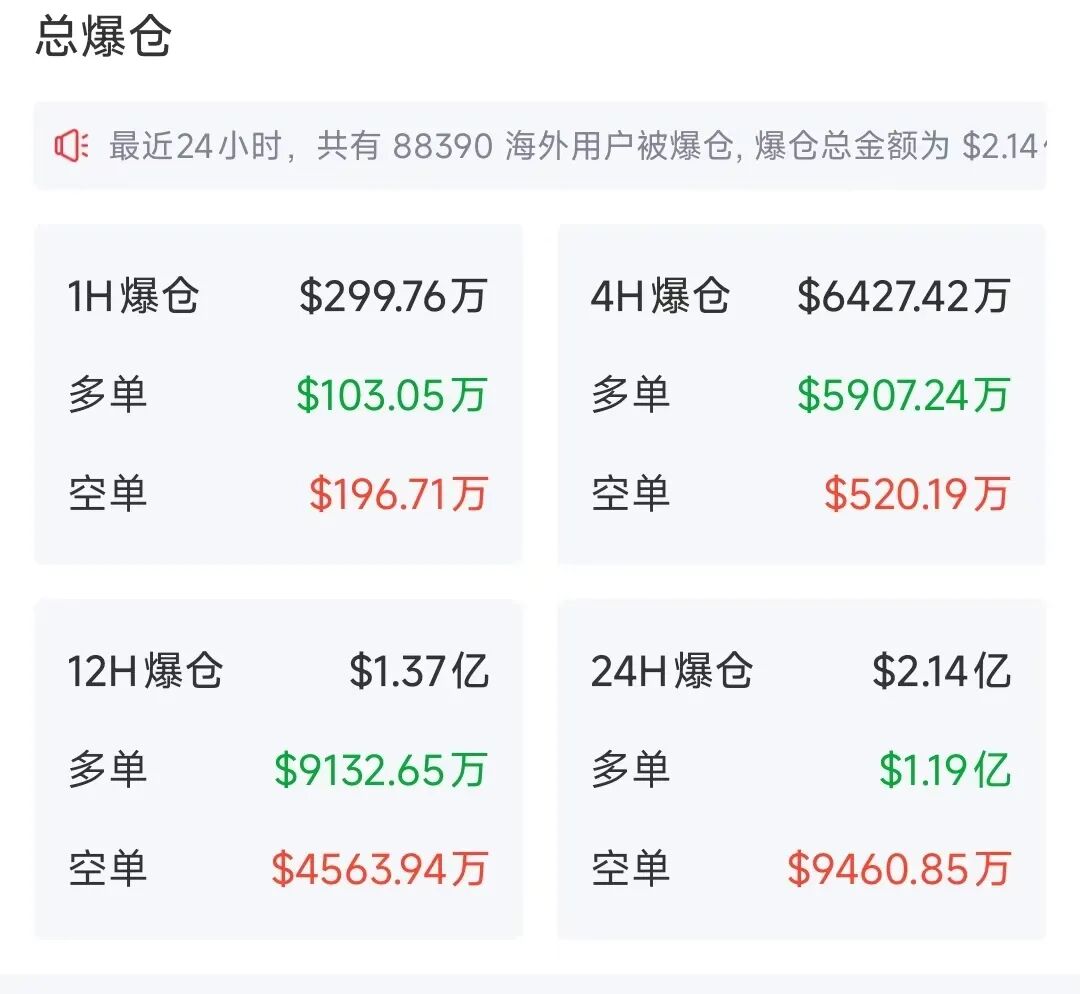 剧烈波动下,加密货币近24小时全球有超8万人爆仓。