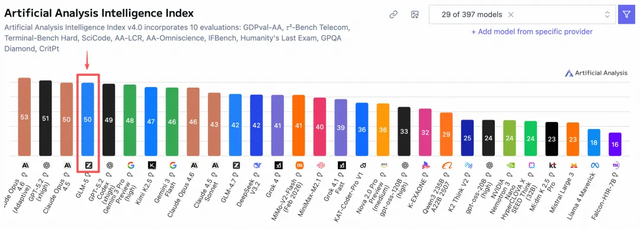 GLM-5的定位是“面向复杂系统工程与长程Agent任务的基座模型”,旨在处理复杂的编程和智能体任务。GLM-5在编程能力上实现了对齐Claude Opus 4.5,性能超过了Gemini3 Pro。在全球权威的Artificial Analysis榜单中,GLM-5位居全球第四、开源模型第一,刷新了国产模型在全球大模型牌桌上的新高度。