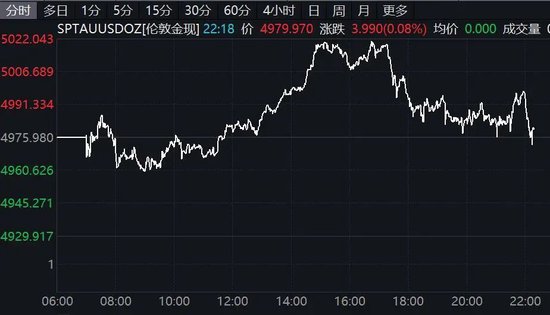 国际黄金、白银出现跳水。现货黄金19日下午一度涨近1%站上5010美元/盎司,晚间又突然下行,一度转为下跌。