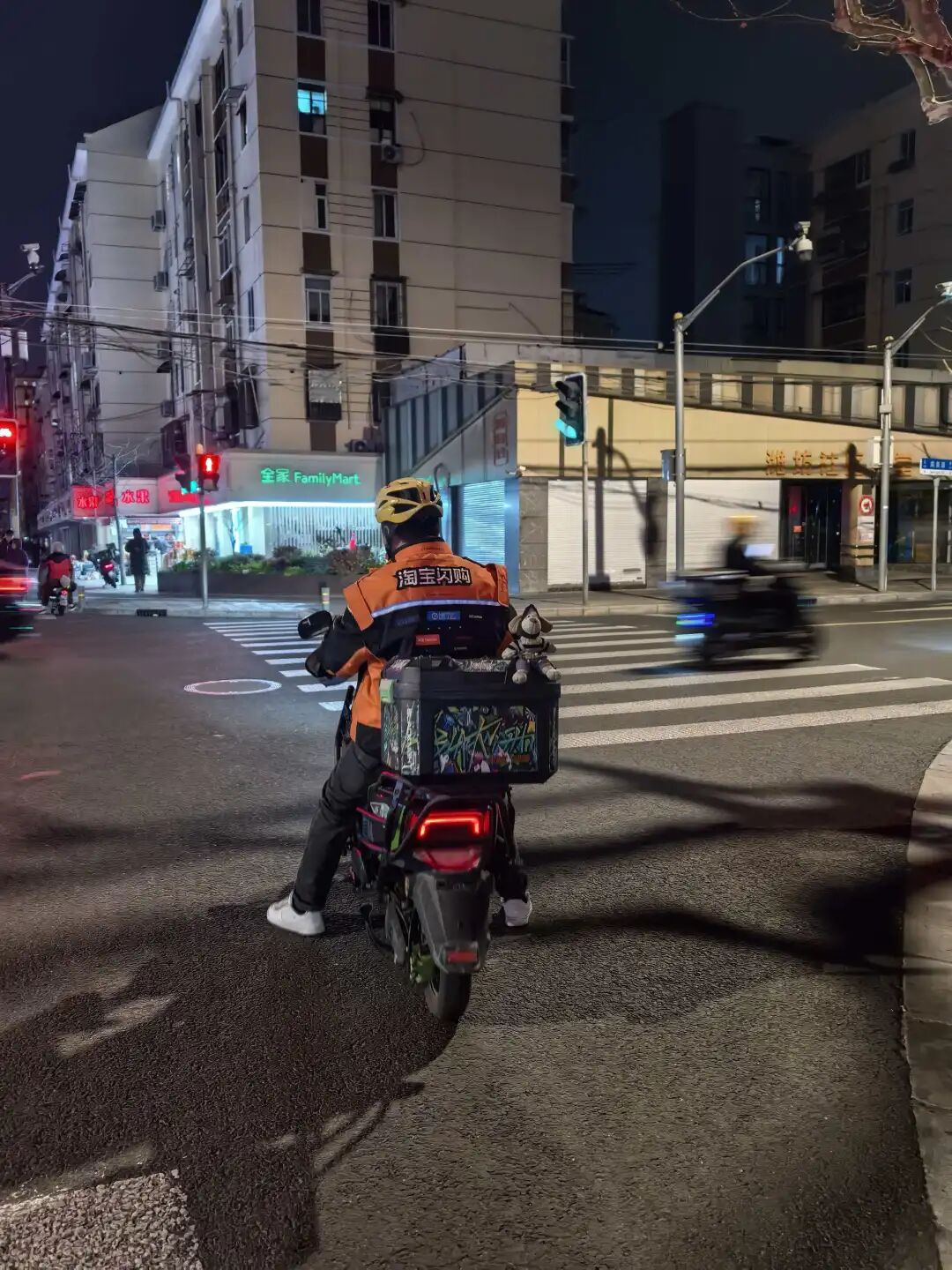和老李说话间,身着淘宝闪购亮黄色工作服的快递小哥一个刹车,停在了烧烤摊前,“老板,你这儿还有豆腐吗?”