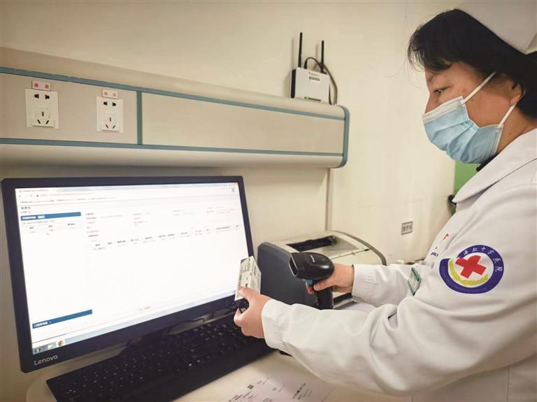 青海红十字医院免疫规划室工作人员录入信息。