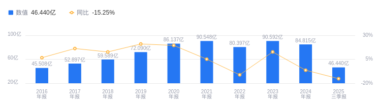 偿债能力方面,2025年三季度华建集团资产负债率为62.99%,高于行业平均的42.53%,但较去年同期的63.79%有所下降。从盈利能力看,当期毛利率为21.81%,低于行业平均的27.95%,且较去年同期的22.54%也略有降低。