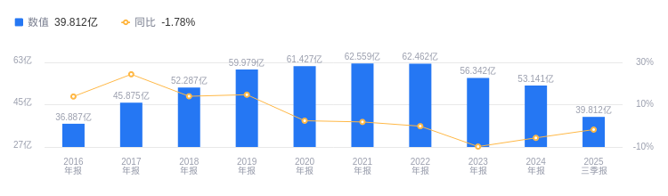 偿债能力方面,2025年三季度贵阳银行资产负债率为90.57%,较去年同期的90.68%略有下降,低于行业平均的92.63%,偿债能力表现优于行业平均。从盈利能力看,当期毛利率为44.18%,较去年同期的37.84%有所上升,但低于行业平均的45.51%,盈利能力稍逊于行业平均水平。