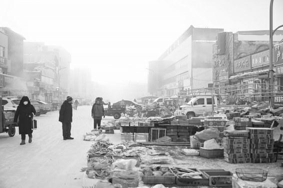 12月26日,市民在内蒙古呼伦贝尔市根河市一处早市选购商品。