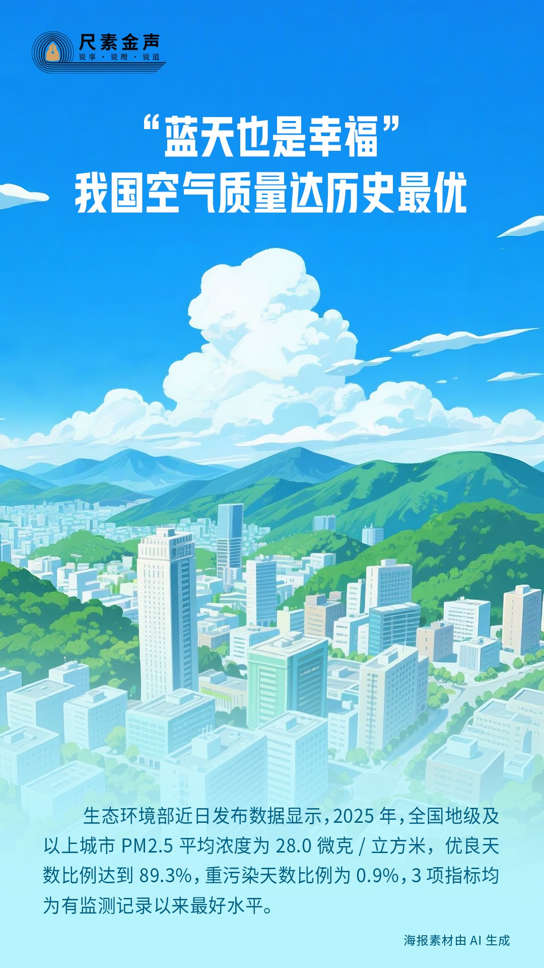 空气质量是可感可及的民生指标,美丽蓝天是美丽中国的重要内涵。