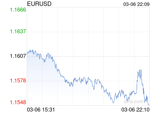 新浪外汇消息2026年03月06日,截至22时09分,外汇市场上兑美元汇率跌破1欧元兑换1.1548美元。跌幅为-0.5083%