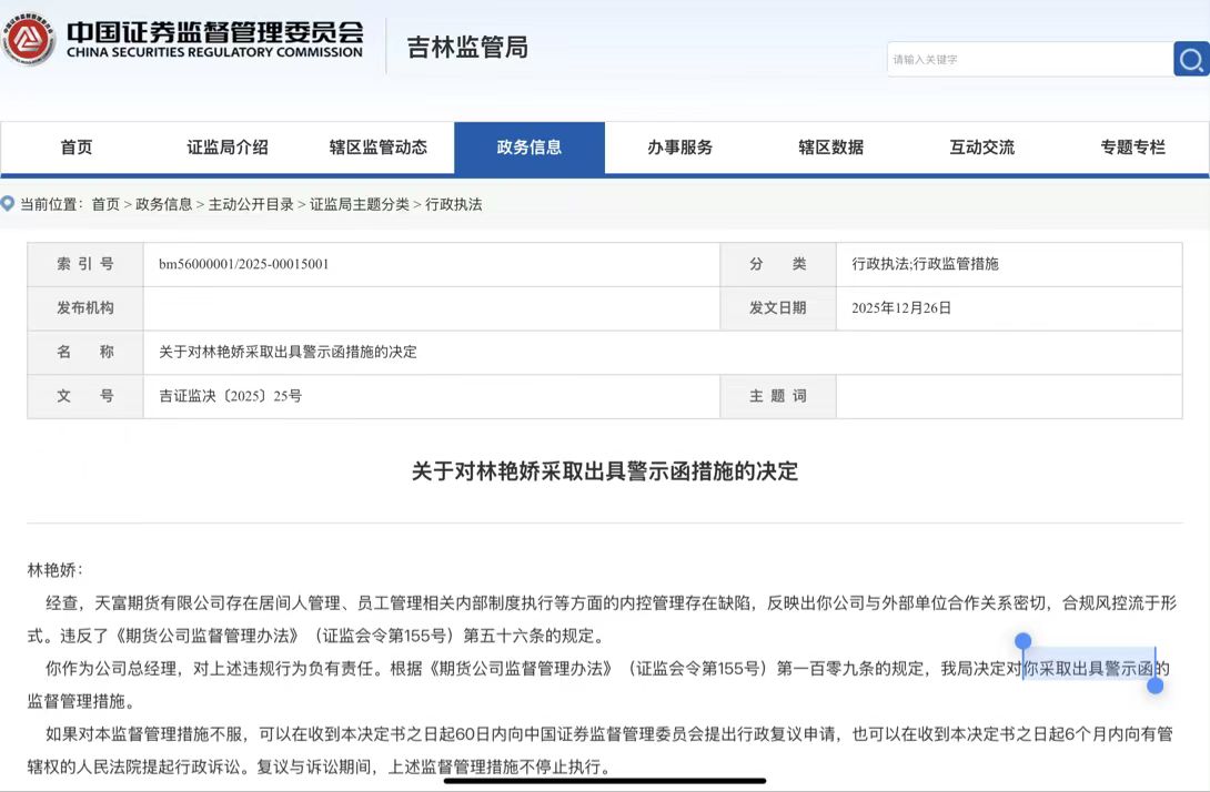 公司总经理林艳娇和公司首席风险官韩钰昴因对上述违规行为负有责任,均被采取出具警示函的措施。