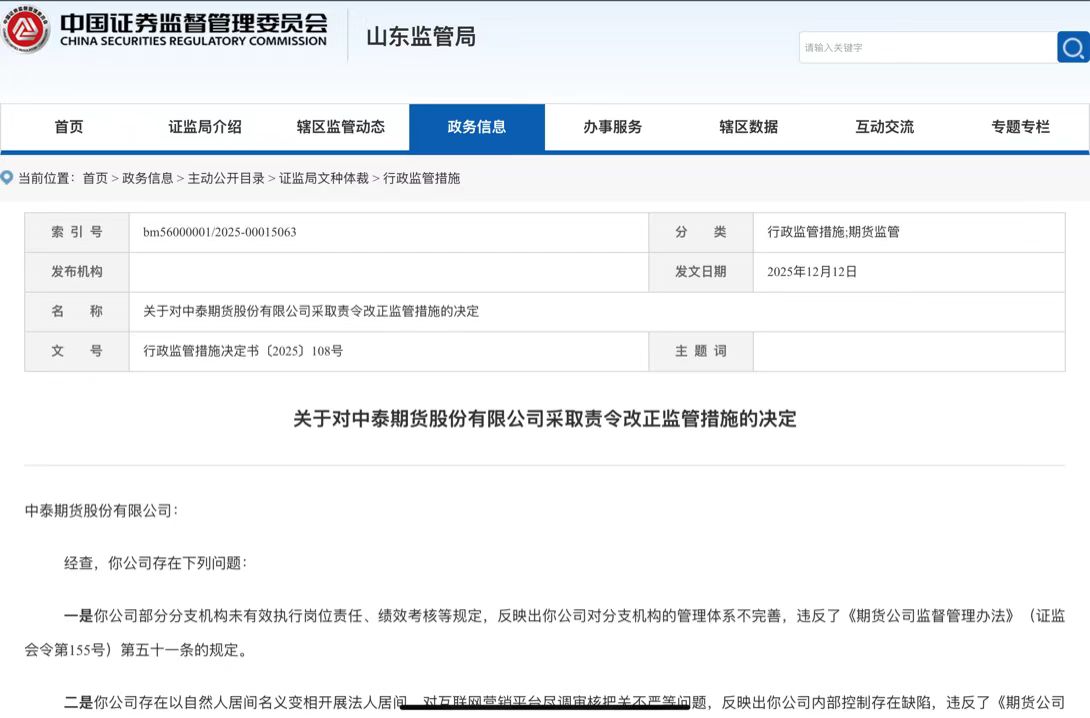 就居间业务的开展,中泰期货收到关于山东证监局的罚单中提到,公司存在以自然人居间名义变相开展法人居间的情况。同时,该公司也在互联网营销方面存在对互联网营销平台尽调审核把关不严的问题,反映出公司内部控制存在缺陷。
