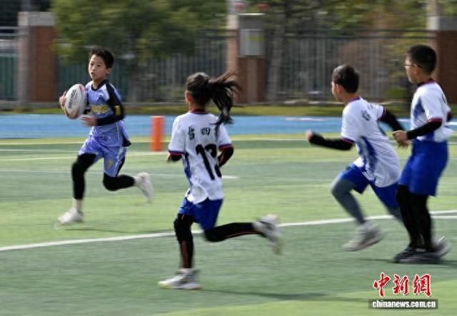 12月27日,小学组参赛队正在比赛中。当日,为期两天的福州市第五届中小学生橄榄球锦标赛开赛,共有51所中小学组队参加,运动员人数近800人。近年来,福州完成从幼儿园到中小学乃至大学的全年龄段橄榄球梯队建设。目前,当地已有超过90所学校引入了橄榄球运动,每年累计开展校园橄榄球训练总量超过了2500次。中新社记者 张斌 摄