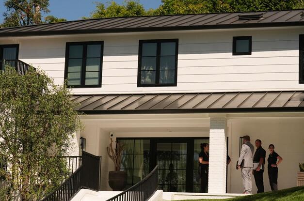 当地时间9日,调查人员在蕾哈娜住宅外工作。图源:美媒