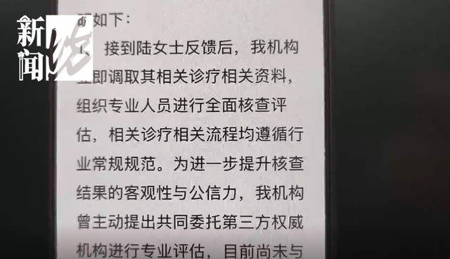 院方表示,本次事件中的相关诊疗流程,均遵循行业常规规范,事发后院方曾主动提出,与陆女士共同委托第三方权威机构进行专业评估,但双方未能就此达成一致。