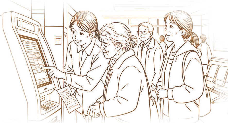 我接待的患者形形色色,各有各的就医难处:有异地就医的患者,他们辗转来京,抱着对大医院的期待,却被陌生的环境、复杂的流程难住;有年事已高的独居老人,连自助机的操作都无从下手;还有独自带娃的年轻妈妈,既要照顾孩子,又要办理手续,忙得满头大汗……