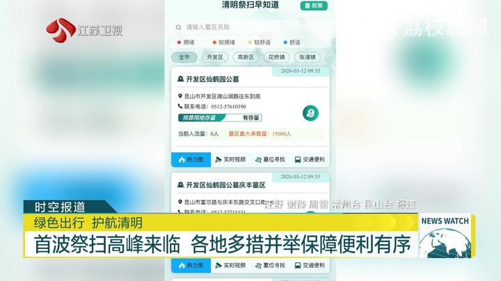 除了南京,江苏其他城市也都全面启动了清明祭扫服务保障工作,在苏州昆山,当地市民还可通过民政部门微信公众号上的“清明祭扫早知道”智慧公墓管理系统,及时查看墓区拥堵状况、公交路线、汽车导航等情况,方便提前做好规划。