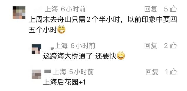 也有网友分享跨海大桥的便利,“上周末去舟山只需2个半小时,以前印象中要四五个小时,这沪甬跨海大桥通了,去舟山还要更快。”