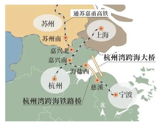 就算在建的杭州湾跨海铁路桥通车后,上海到宁波的高铁能缩至1小时左右,也还是要经过嘉兴绕行。