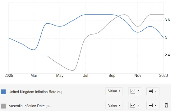 澳大利亚和英国的2月份CPI数据都会在本周三公布,并且两者大概率都将维持不变。从目前的市场预期看,澳大利亚2月份未季调CPI年率预期值为3.8%,与前值持平;英国2月份CPI年率预期值为3%,同样与前值持平。