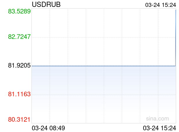 新浪外汇消息2026年03月24日,截至15时24分,外汇市场上美元兑俄罗斯汇率突破1美元兑换83.4955俄罗斯卢布。涨幅为1.9226%