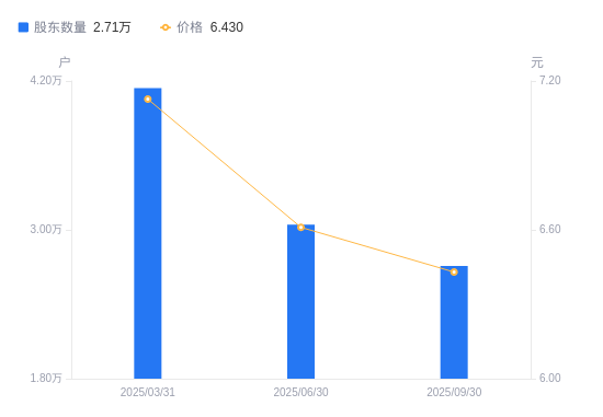 3月26日消息,数据显示,截至2025年12月31日,A股股东总户数为2.91万户,较上期(2025年9月30日)增加2030户,增幅7.49%。公司最新A股总股本为5.76亿股,其中流通A股5.76亿股,户均持有流通A股数量为1.98万股,较上期减少1481.39股,降幅6.97%;户均持流通A股市值13.9万元,较上期增加2339.51元,增幅1.71%。