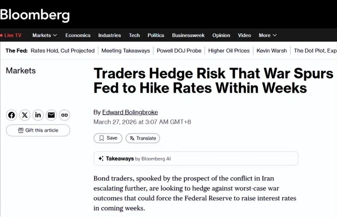 这一对冲紧急加息的举动标志着市场预期的急剧逆转。仅在一个月前,市场还预计到今年年底美联储将进行多达三次、每次25个基点的降息。然而,自2月28日冲突爆发以来,掉期市场的交易员已将12月前加息的概率定价在50%左右。