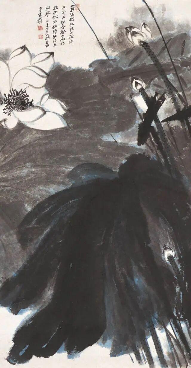 宋美龄尝使张群访张大千,请绘妇女礼服图样,大千婉谢之。却于1949年为夫人徐雯波、长女张心瑞、澳门杨芬女士及富豪蔡克庭两女两媳各手绘荷花白缎旗袍一袭。