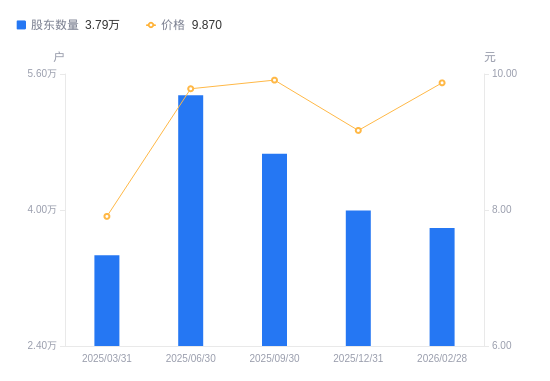 3月30日消息,数据显示,截至2025年12月31日,A股股东总户数为3.99万户,较上期(2025年9月30日)减少6683户,降幅14.33%。公司最新A股总股本为13.09亿股,其中流通A股13.09亿股,户均持有流通A股数量为3.28万股,较上期增加2.74万股,增幅514.39%;户均持流通A股市值30.04万元,较上期增加24.76万元,增幅468.51%。