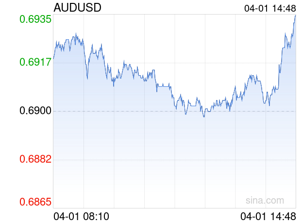 新浪外汇消息2026年04月01日,截至14时48分,外汇市场上兑美元汇率突破1澳元兑换0.6936美元。涨幅为0.5217%