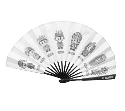 扇面上的八福形象,不仅还原了八门守护的模样,更融入了方城的历史底蕴——当年皇太极改建八门,使城内街路由十字街变为井字街。这份历史印记,也悄悄藏在了扇面的设计之中。而且,整个折扇色彩明快、线条利落,黑色扇骨沉稳大气,握在手里质感十足。