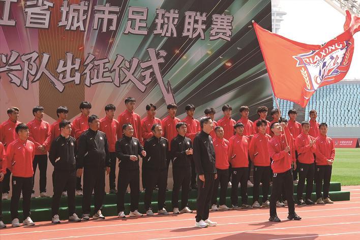 4月1日,嘉兴队出征仪式在嘉兴市体育中心举行。现场,身着红色球衣的嘉兴队球员个个精神抖擞、神采奕奕,尽显禾城健儿的昂扬斗志。随着球队代表郑重接过授旗,“嘉足马力,驰骋浙里,嘉兴队出征!”的激昂口号回荡空中,这份仪式感与使命感,正激励着嘉兴队在即将打响的揭幕战中挥洒热血、奋勇争先。
