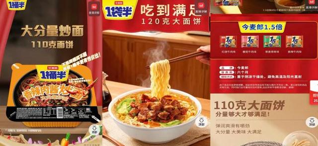 今麦郎旗舰店里“1桶半”“1袋半”“1.5倍方便面”对应的面饼重量混乱。