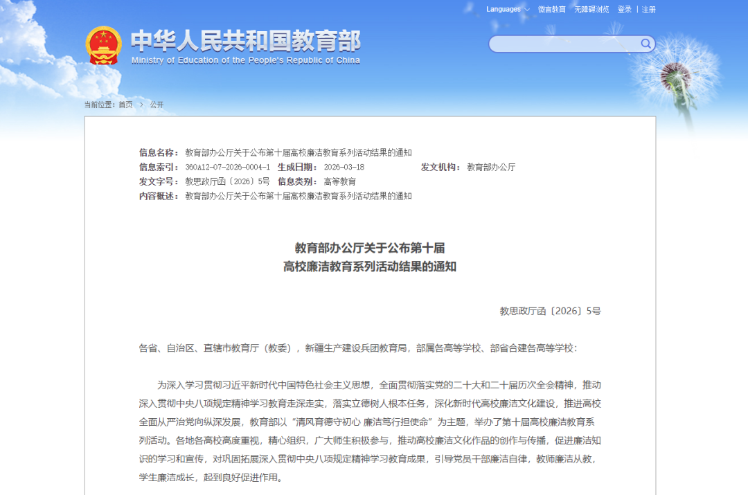 教育部第十届高校廉洁教育系列活动以“清风育德守初心 廉洁笃行担使命”为主题,结合高校实际,围绕立德树人根本任务,推动深入贯彻中央八项规定精神学习教育走深走实,促进党员干部廉洁自律树榜样,教师廉洁从教正己身,学生廉洁成长重品德,围绕“学廉、思廉、践廉”三大主线展开。