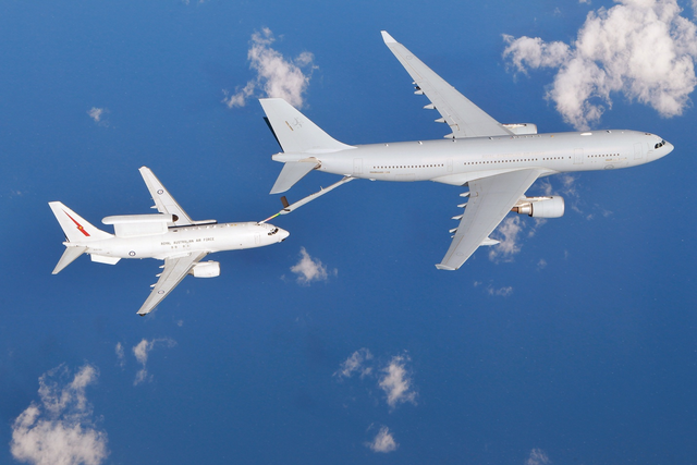 E-7预警机在从A330MRTT加油机空中加油