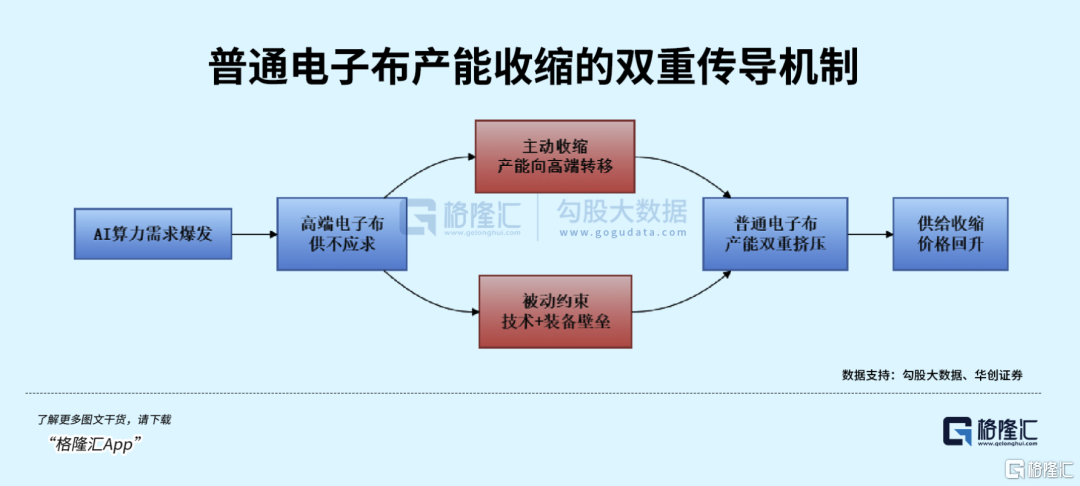 AI算力驱动的高端需求爆发,不仅打开了电子玻纤布的成长空间,更引发了行业产能结构的深度调整,“高端挤兑低端”的格局形成,供需“剪刀差”持续扩大,推动行业整体迎来量价齐升的上行周期。