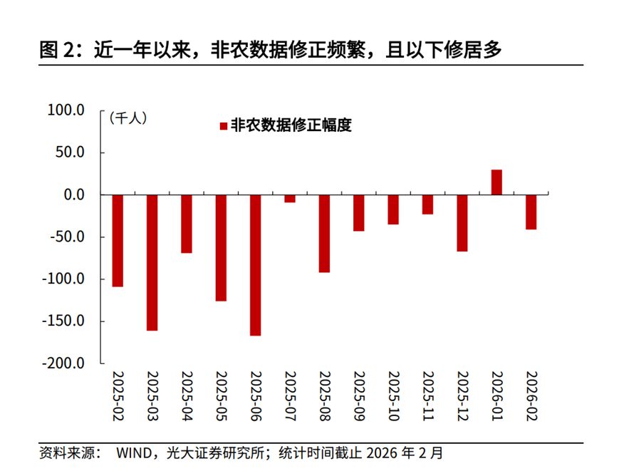 光大证券同时强调,2月就业数据被进一步向下修正,由初值的-9.2万人修正至-13.3万人,近一年以来非农数据修正频繁,且以下修居多,不排除本次非农数据初值被下修的可能。